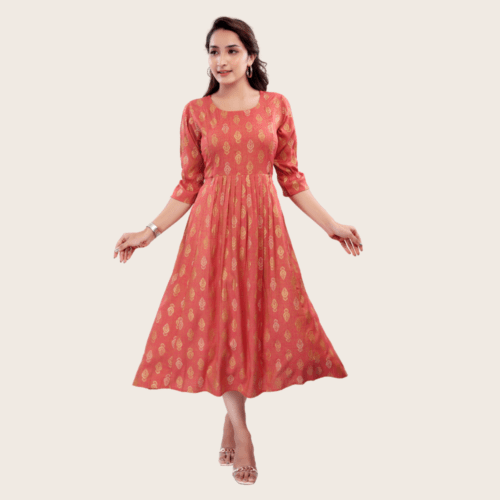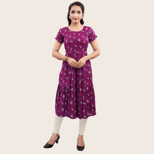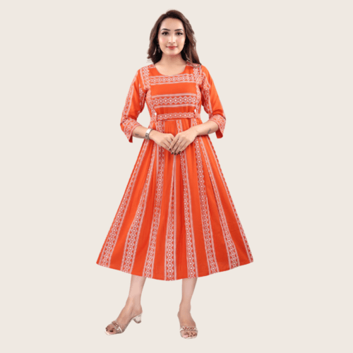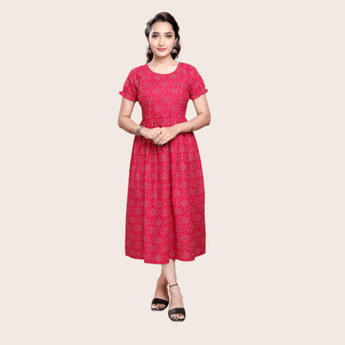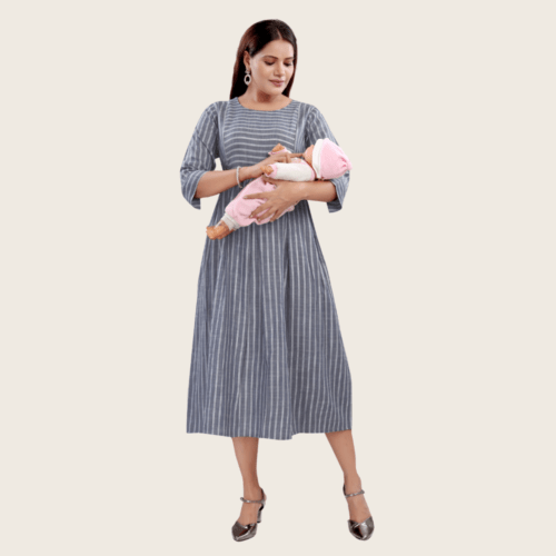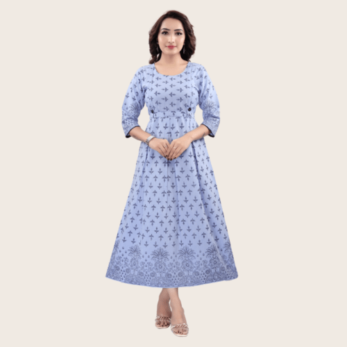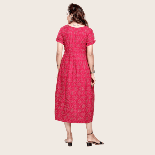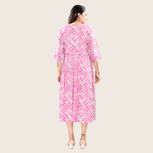 Women’s Printed Flared Anarkali Maternity Dress, Feeding Kurti with Zip